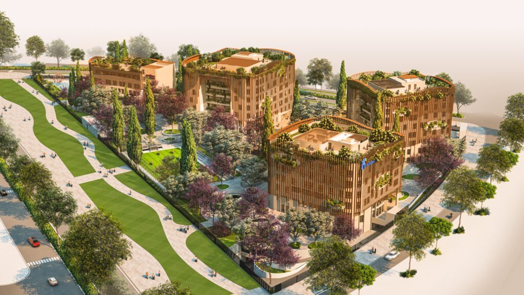 Honoris est un complexe universitaire d’envergure composé de quatre bâtiments et d’un sous-sol, développé sur un terrain de 19 380 m² au cœur d’Anfa Cité de l’Air. Le programme accueille plusieurs institutions du Groupe Honoris : le siège du groupe (R+3), l’école EMSI (R+6), l’école d’architecture EAC (R+5) et l’école Mundiapolis (R+5), pour une surface SHON totale de 23 170 m². Un niveau de sous-sol est également aménagé pour répondre aux besoins logistiques du campus. La programmation du projet est pensée pour offrir des espaces adaptés à des activités académiques variées, dans un environnement moderne et fonctionnel.